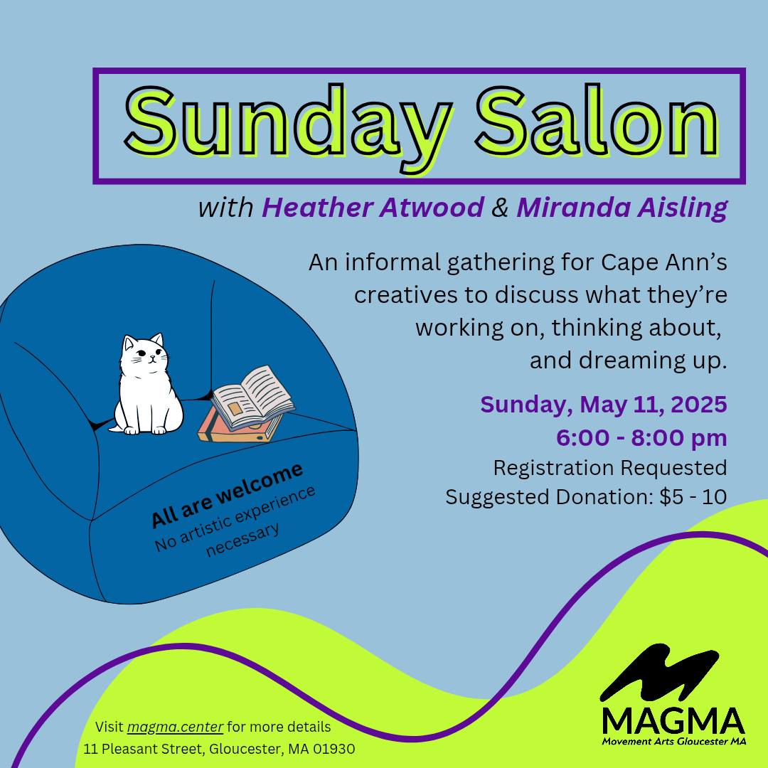 BUY TICKETS Gloucester singer-songwriters Miranda Aisling, Charlee Bianchini, and Renee Dupuis are coming together at MAGMA to trade songs and stories and welcome Spring. Join them on Friday, May 2, 2025 at 7:00 pm. Tickets are available on a sliding scale from $10 – 30 both online and at the door, ensuring everyone has access …